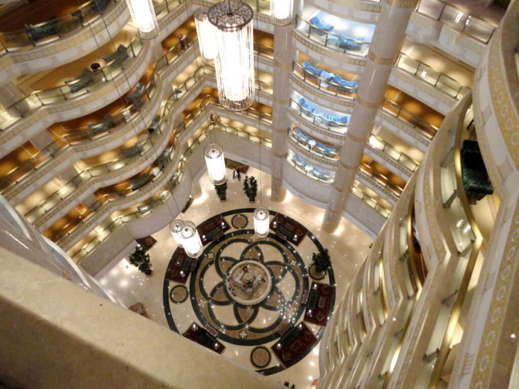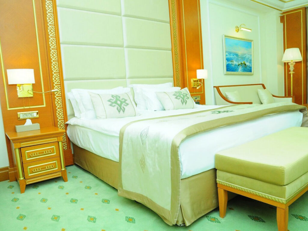 On the upper floors of the hotel are located President apartments, consisting of reception, boardroom, bedroom, and rooms for guards and staff. One floor is reserved for luxury apartments of the President of Turkmenistan.