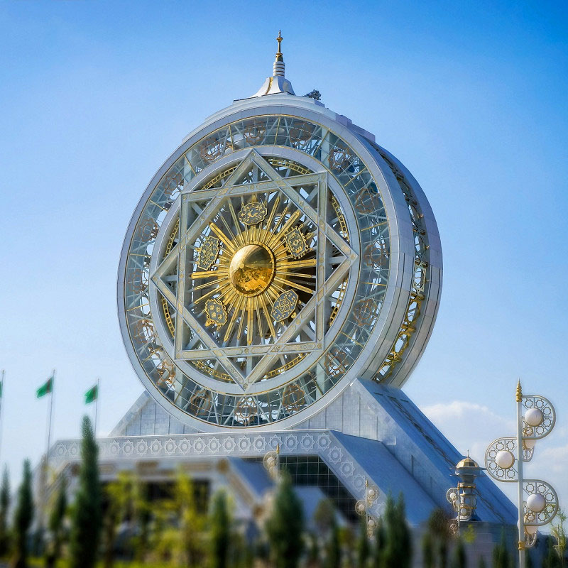 A very interesting place for visiting in Ashkhabad is monument to the book “Ruhnama”, which was written by Turkmenbashi, the first President of Turkmenistan. The book is considered sacred to the Turkmen, and it describes a biography of the first President, the country’s history, as well as the basic commandments and moral principles by which to live residents of Turkmenistan. At certain times the book is opened with the help of multimedia technologies, visitors to the monument can see clearly the important historical moments of formation and development of Turkmenistan.